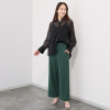 “(株)ソアロン”のトリアセテート“ソアロン”と、ポリエステル仮撚り糸に強撚をかけ、ハイゲージ(28ゲージ)の丸編み機で編み立てたポンチニット素材を使用。