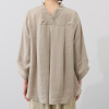 そろそろ気温も下がってきたので秋っぽいブラウスが欲しくで、ネイビーMサイズを購入しました。普段はLサイズを購入するのですが、こちらのブラウスはMサイズで丁度よかったです。難点は頭から被るサイズに少しキツイ感じはありますが何とかなりそうです。お値段もお安くなっていてお買い得でした。