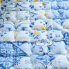 詰め物は上層から、ふんわり柔らかの中わた、床付き感を軽減するための固わた、除湿、消臭(アンモニア、酢酸、イソ吉草酸、ノネナール)、防ダニ機能のあるシリカゲル入りシートを採用しました。
