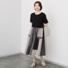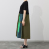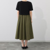 トップス部分は伸縮性に優れたストレッチ素材、スカート部分には程良いハリ感があり、通気性と肌離れに優れた布帛を使用。