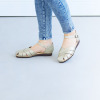 やや厚みがありながら柔らかな革が自然に足になじみ、素足でもやさしいはき心地が特徴です。