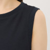 コンパクトなネックラインとアームホールは広幅のバインダー仕上げで、全体の印象を引き締めています。