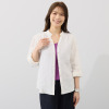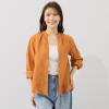麻100%はシワになり易いですから、衿がスタンドカラーだと扱い易いです。