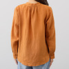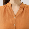 贅沢なリネンが織り成す軽やかな一枚。ふんわりギャザーと計算されたスタンドネックで、シックな装いを。