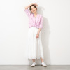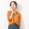首元に自然となじむカーブを持たせたネックデザインからのふんわりギャザーが、かっちり感を抑えた柔らかな表情を演出。