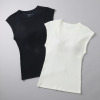 プラスケー コットンブレンド フレンチスリーブ カップ付 リブインナートップス 2枚セット