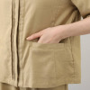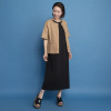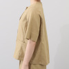 ジャケットのパターンを採用した立体的なフォルムと、身頃に切り替えをほどこしたことにより、ゆとりがありながらもすっきりとしたシルエットを実現。