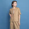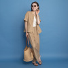 麻特有の凹凸感と光沢が上品さを醸し出し、夏の装いに爽やかな清潔感を与えます。