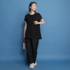 ポリウレタンを配合したことにより、薄手のジャージーでもコシがあり、身体のラインを拾いにくく、肌触りもサラッとしているので、暑い季節にうれしい肌離れの良さを実現。