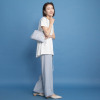 比翼仕立てで表からボタンが見えないすっきりとしたデザインながら、貝ボタンを採用し高級感をプラスしました。