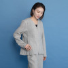 袖は、二枚袖で腕と肘の屈折に合わせた立体的なパターンのため、ゆとりがありながらもすっきりとしたフォルムを実現しました。