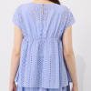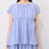 花柄の抜き柄やジグザグ柄、四角や丸の抜き柄などをバランス良く配置した綿100%の総アイレットレースを使用。