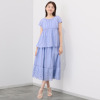 胸下にゴムギャザーを寄せた切り替えを配し、そこからふわっと広がるトレンド感あふれるフレアーシルエットに。