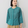 前開きタイプで、ボタンを留めてブラウスとして着用するだけでなく、羽織りとしても活用できる便利な一枚。