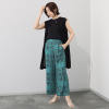 シルバーミントシュガー 梨地ジョーゼット プリント ワンタックワイドパンツ