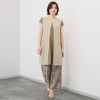 梨地ジョーゼット織りが生む軽やかな夏の風合い。ヒップからすとんと落ちるシルエットですっきり見え。