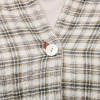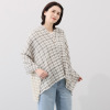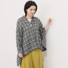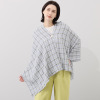 肌当たりがふんわりと柔らかく、ポコポコした織りで肌にまとわりつかず、大判なので腕もほとんど隠れます。首の後ろを少し内側に折り返してボタンを留めると、首回りにタックを寄せた服のようにもなり、ボタンを留めても二の腕のつっぱり感が少ないです。