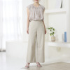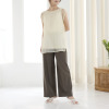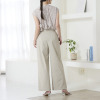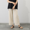 さらりと涼やかな麻混素材で暑い季節も快適。程良い太さのワイドシルエットで、すっきり洗練された印象に。