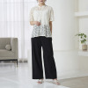 黒の色が綺麗でワイドパンツの形も綺麗だったのですが生地が冷感の割に暑くてこの夏には耐えられません。シャキシャキした布地がお出かけ着のようでもありますがどこから見ても暑苦しそうで残念でした。