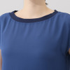 ネックラインは片側がボートネック、もう片側はVネックで、前後でさりげなく印象を変えることができます。