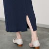 シャリ感のあるドライタッチな手触りながら、リブの凹凸でもちっとした程良い肉感があるワンピースです。