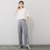 身頃はフロント中央とバック中央のタックでゆとりを持たせることでお腹周りや背中などを、少し長めの着丈で腰周りからヒップを自然にカバーしながら、こなれた印象に仕上げています。