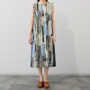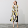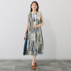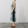 筆書きしたようなニュアンス豊かな縦柄のプリントは、淡いグラデーション風の配色と差し色のコンビネーションが美しく、夏の装いを引き立てます。