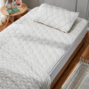 中わたには、抗菌防臭わたと軽くてボリュームのある中空ポリエステルわたを使用し、やさしい雰囲気の曲線キルトを施すことで、ふっくらとした肌心地を実現。
