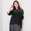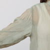 透ける素材とシワ加工で軽やかな印象に。シャープさと抜け感を兼ね備えた、大人の洗練ブラウスです。
