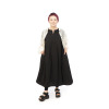 後ろ身頃は深いラウンドのギャザーとリボンで軽やかな動きとエッジを効かせています。