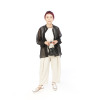 縦方向にシワ加工をランダムでほどこすことでナチュラルな印象を加え、素材の程良いハリ感がシルエットを美しく演出してくれます。