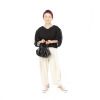 袖口は前側が短く後ろ側が長い非対称デザインで、気になる肘を隠しつつボリューミーなシルエットを作り出します。