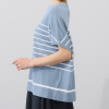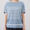 スピンブルー 接触冷感・吸水速乾 フレンチリネンブレンド ジャージー プリントボーダー プルオーバー