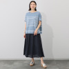 肌に触れた瞬間ひんやりと気持ち良いリネン混素材。モダンなパネルボーダーが夏の装いのアクセントに。