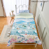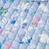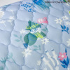 肌掛けふとんの柄はふんわりな北欧調の爽やかな大柄、裏側はブルーがメインの総柄になっており、気分によって裏表を変えられる、両面接触冷感生地のリバーシブル仕様。