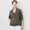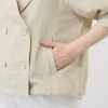 麻のような表面感を持つさらりとした質感の素材を使用した、セミダブルデザインのライトジャケットです。