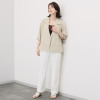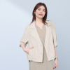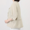 2種類の糸を巧みに組み合わせることで、麻のようなスラブ感を表現しながらも、シワになりにくい素材特性により、カーディガン感覚で気軽に羽織れるうれしい一着。