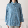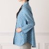 台襟付きのシャツカラーと、裾に向かって広がるAラインのゆったりとしたシルエットが、気になる体型をさりげなくカバー。