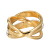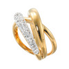 パヴェセッティングしたクリスタルガラスの輝きをまとったラインと、地金のみのシンプルなラインが交差するデザイン。