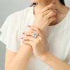 配送日が待ちきれず、配送の会社までとりに行ってきました。ちょうどアクセサリー好きの友人に会う日だったので、そのまま持っていってお見せしたら、「私もほしい〜。」とその場でショップチャンネルに電話。ともかくこの輝きの美しさとボリュームで指が華奢に。