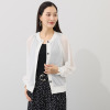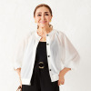 スカートでもパンツスタイルでもワンピースでも、何にでも合わせやすく可愛らしいデザインで、シアー感も透けすぎず、綺麗に見せてくれる絶妙なシアー感だと思います。
