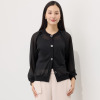 光沢のあるなめらかな生地は高級感があって確かにいつも着ているファストファッションとはモノが違う、と納得しました。大きめなボタンやゆとりのある袖のデザインもとても気に入っています。