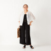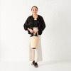 肩先から広がるボリュームスリーブは袖口にリブをあしらうことで丸みのあるシルエットを強調し、フェミニンな印象を引き立てます。