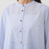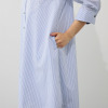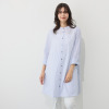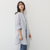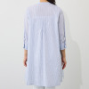 縦のラインを強調するストライプ柄に、胸元の刺しゅうがアクセントになったロングブラウスです。