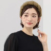 つばのフリル部分をくるくるとバンドに巻き付けてアレンジすれば、ヘアカチューシャにもなる2ウェイ仕様。