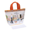 フローリストを購入。軽いのに生地にハリがあり型崩れ無し。丁寧な縫製です。底板がパイピングの下にきれいに収まり荷物か安定しそう。持ち手や背面の水色が優しい色合いなのも気に入りました。外国の街並みの絵柄が素敵で眺めるだけで気分が上がります。キャンペーンでお安く買えて大満足です!