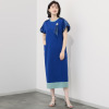 ジョーゼットポンチ素材を用いた、半袖コクーンワンピースです。