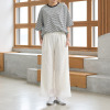 微ギャザーを入れたウエスト総ゴム仕様で楽なはき心地を実現。