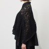 襟と前立て、カフス、後ろ身頃になど、ベースと同じ布帛を用いることで、全体のバランスを整えつつ、大人っぽいエレガンスさを表現しました。