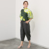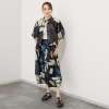 プリント×ドルマンスリーブの大胆デザイン。裾のドローストリングで変化を楽しむ、夏の涼やかな一着。